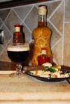 I am very proud of the latest brew. I have been brwing at home since 1993 or so. Took some time off and back at it for a year now. I usually do kit beers but this current beer is a partial grain batch and it is outstanding. I was sitting down for a light lunch and included this beer. I am not too good at the editing bit so the photos show up twice. Click on an image to see it enlarged. The beer looks dark and sort of is, amber ale extract and 40 Deg Crystal malt steeped prior to boiling. Used Fuggles hops and Amarillo hops and it is just perfect on the hopping side.
