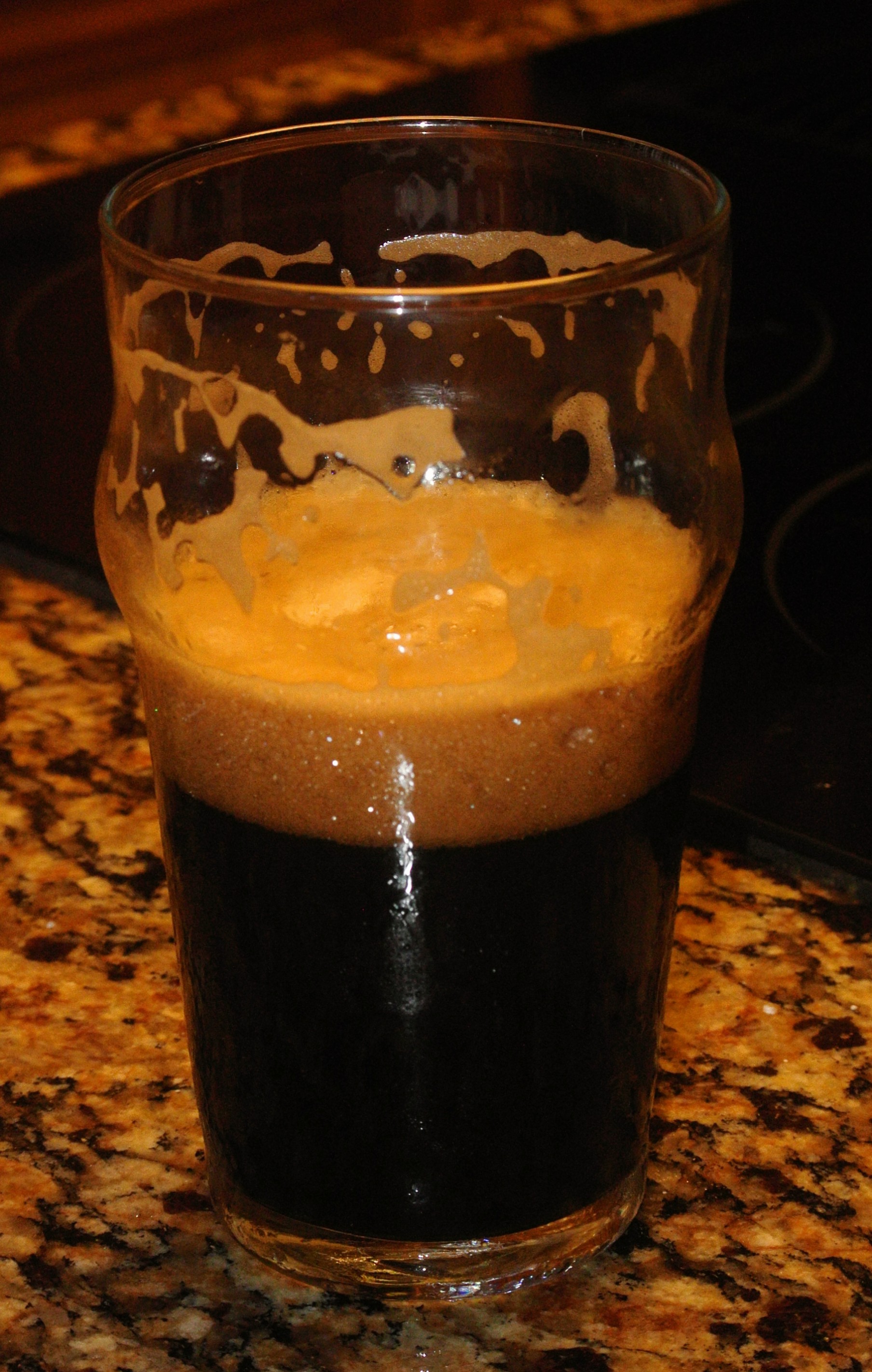 So, I kicked back and enjoyed a partial bottle of my Russian Imperial Stout…..it is getting better every time I crack one open. Nice tan head, a bit of lace on the sides of the glass and the bourbon notes from the whiskey soaked oak that had sat in the secondary fermenter for three months are mellowing nicely. A hint of coffee, vanilla and a nice warmth as it slides down….Can’t wait to see how it ages … a couple of years from now I will sip on the final few bottles. This is a “one and done” type of beer… a nice finish to the evening and some sweet dreams. Brewed at the end of May this year and we will enjoy it even more in December/January – if it ever cools off!