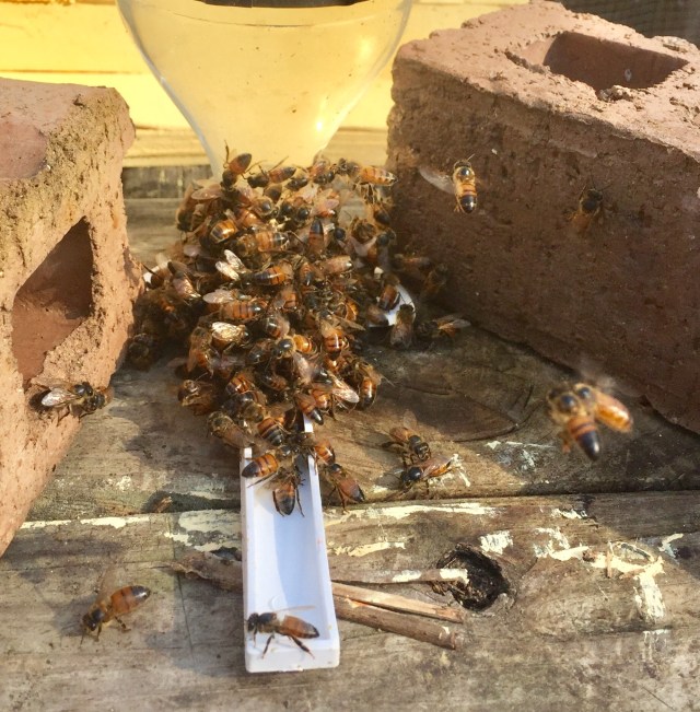 I have been doing some open feeding in the backyard as an act of kindness for the early spring  foragers. The bees have been mobbing the feeder. This indicates a whole lot of bees nearby!