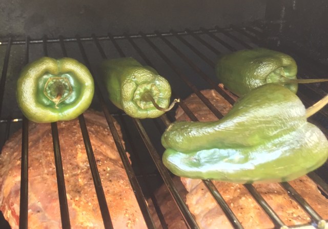 Yes it is. The ribs are in the smoker and 4 homegrown Poblano peppers are on the top rack. I am giving the peppers a 30-45 minute dose of apple and pecan wood smoke preparing them for a batch of Smoked Poblano pepper jelly.