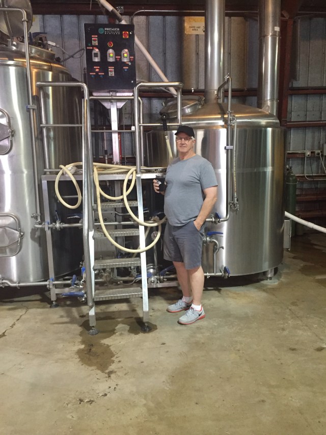 Mike Norfleet, one of the owners up on his podium…..walkway between the mash tun and brew pot….delivering the beginning of an excellent tour of the brewery.