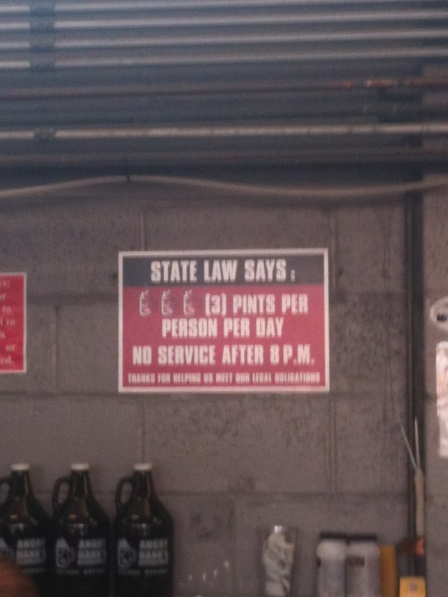 I arrived at Angry Hanks, a converted service station with a fenced in patio section. The folks that I followed in were bringing “take-out” food in. It seems that is the norm here at Hanks. Get off work, grab a few boxes of hot-wings or whatever your fancy is and enjoy a couple of cold ones. Hanks is a tap-room and not a pub or restaurant. Which means they can only be open from 4 PM to – well last beer poured by 8 PM and everyone out before 9 PM. Limit is 3 pints per person. Three pints of good craft beer is plenty – they range from 5% ABV to 8 or 9%Â for some of the stouts.
