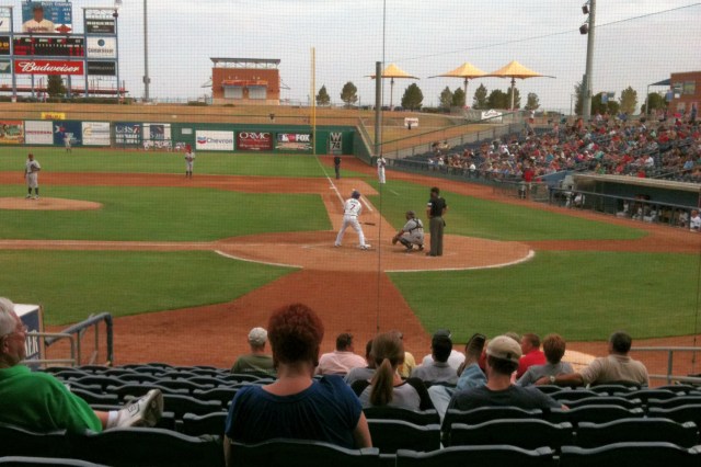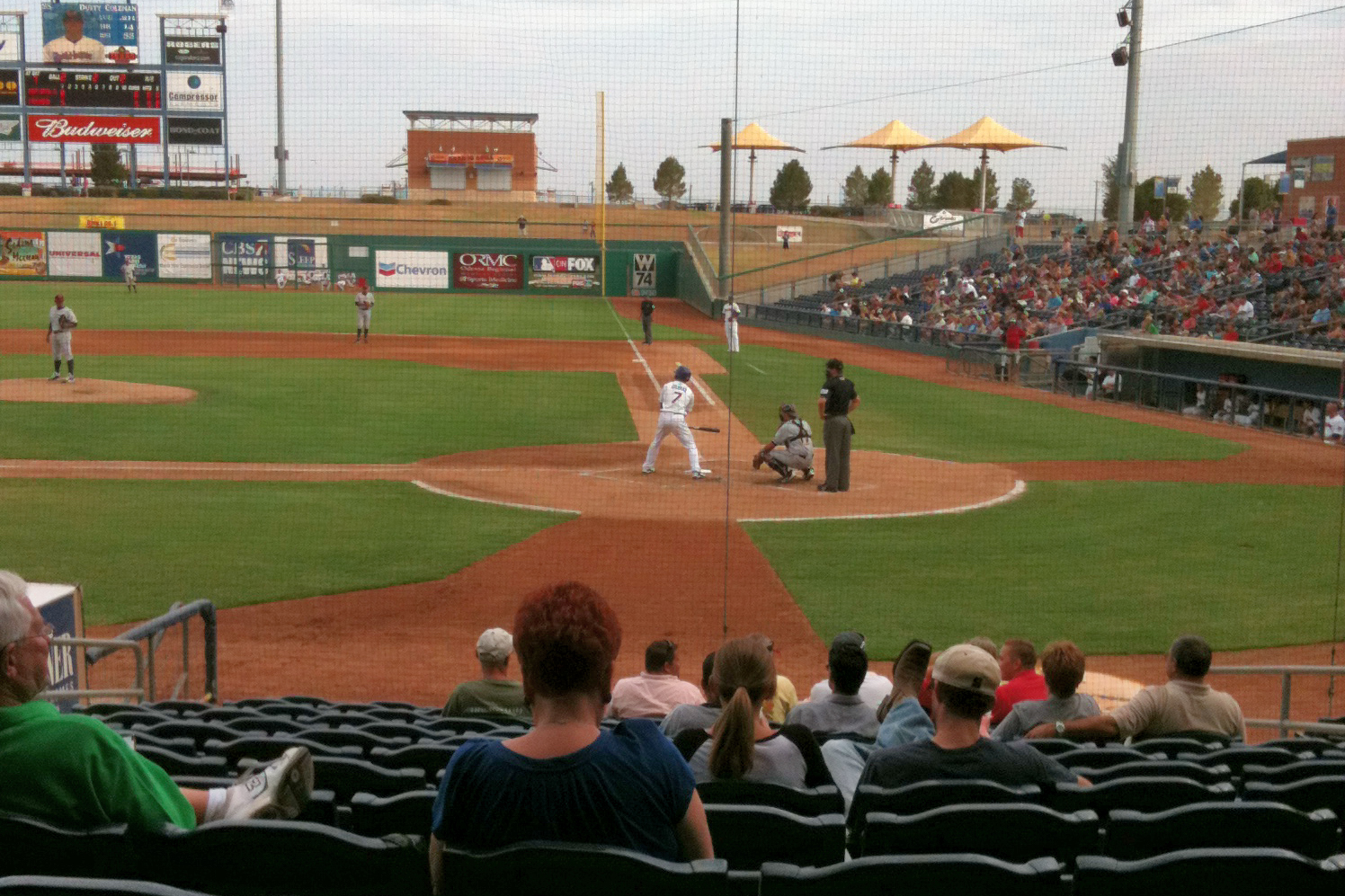 From our seats…. somebody liked us and set us up with box seats. Thanks Zoe at the Residence Inn in Midland. Please note the Chevron(my former employer) sign on the outfield wall. The first of several Rockhounds home runs went out way above the Chevron sign.